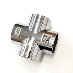 金属の湾曲面に 英数字・ロゴ・QRコード を 白・黒 の2色で加工を行ないます。